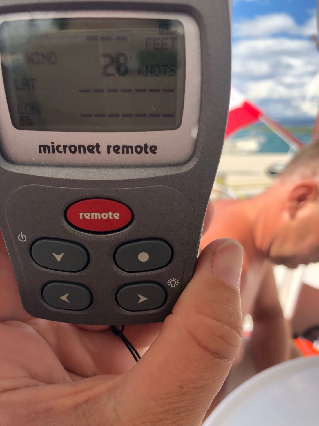 Bei 30 kn Wind beschließen wir schließlich das Sonnensegel abzubauen!