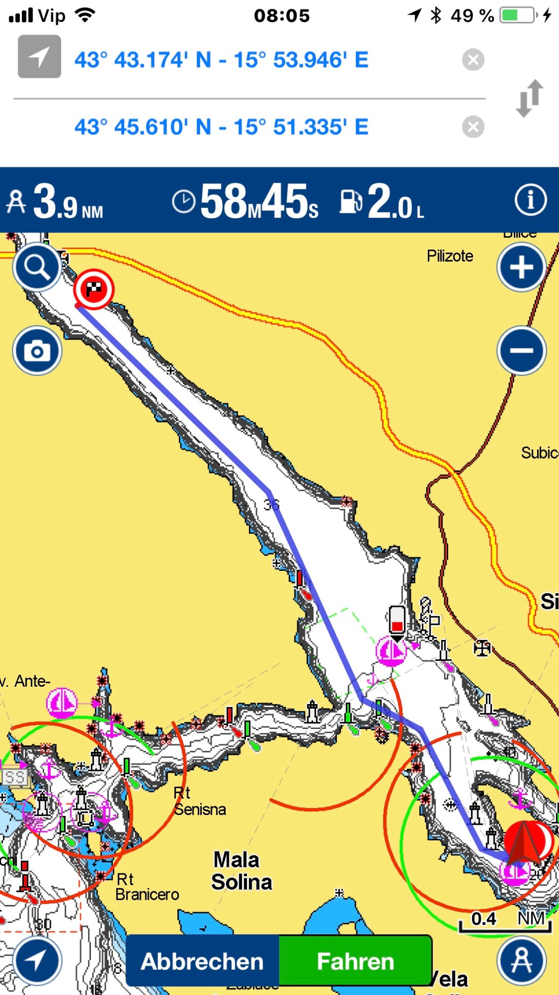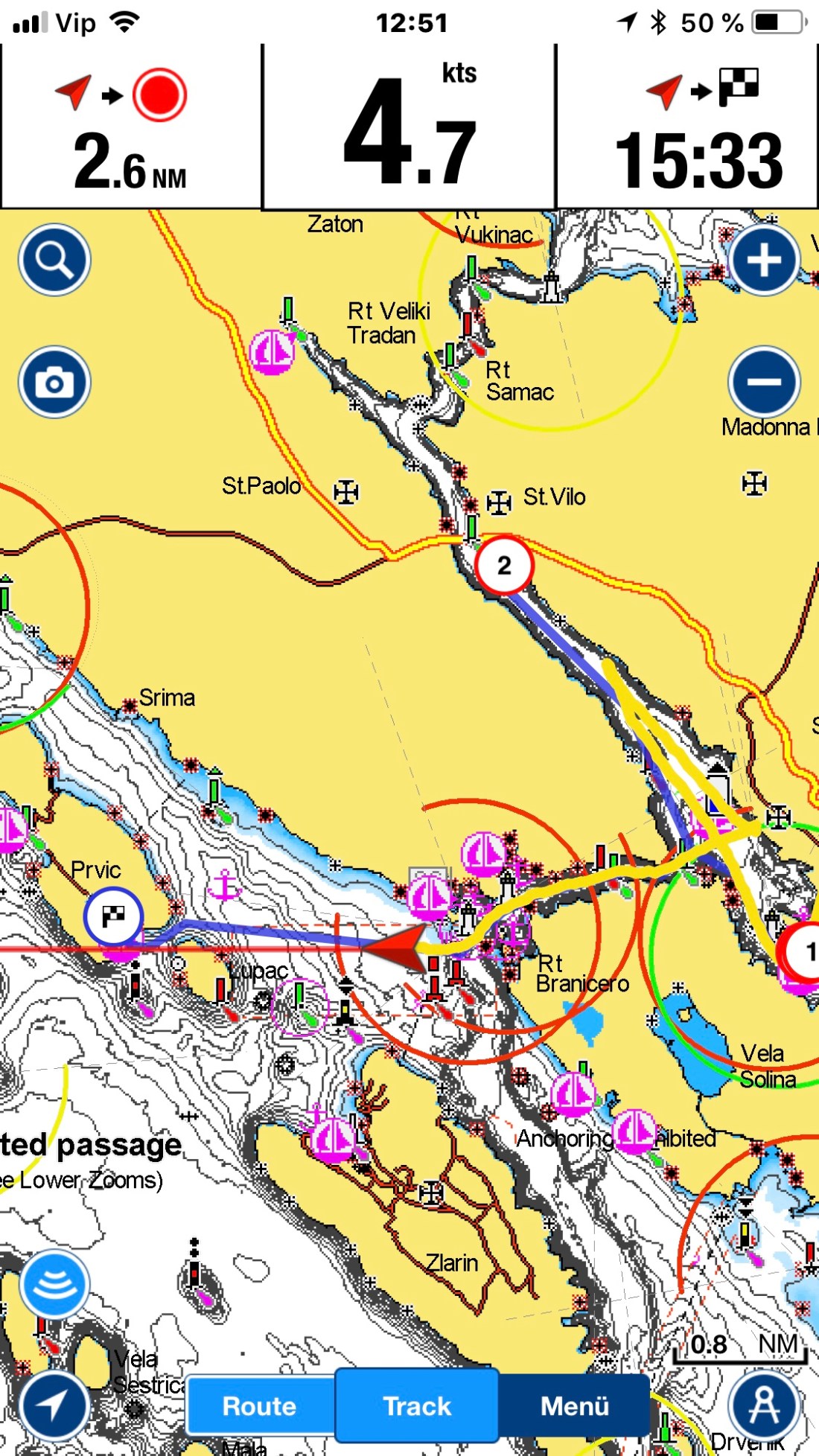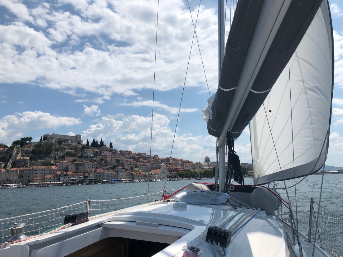 Wir legen ab aus der Bucht und segeln ohne Motor hart am Wind nach Vodice!