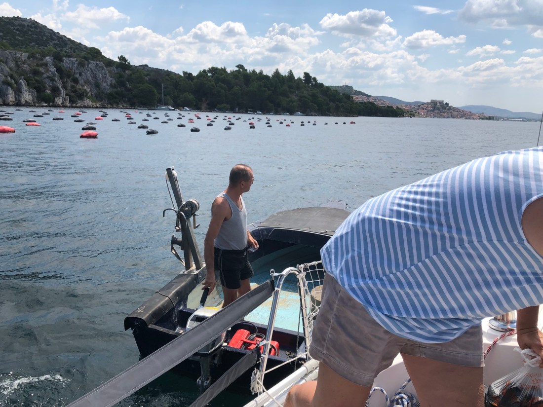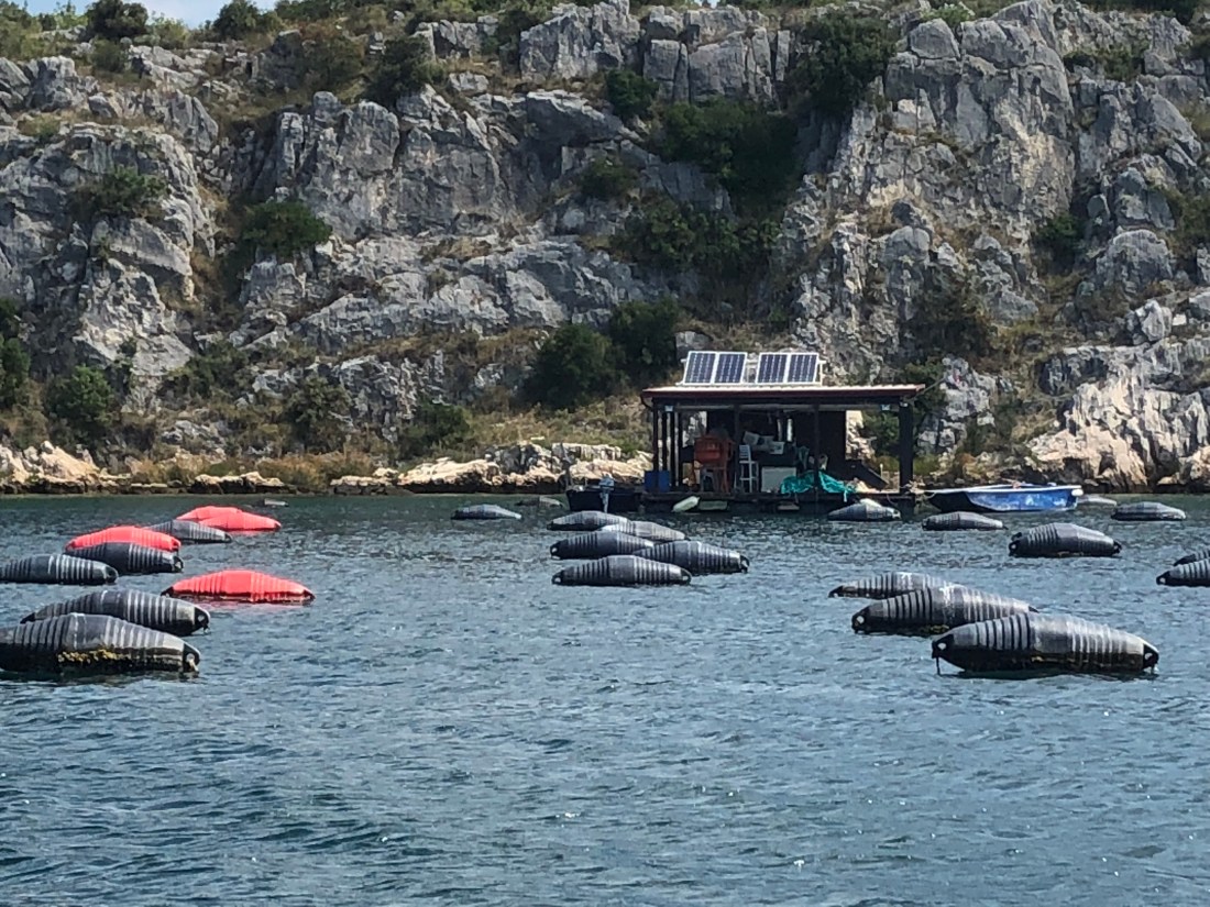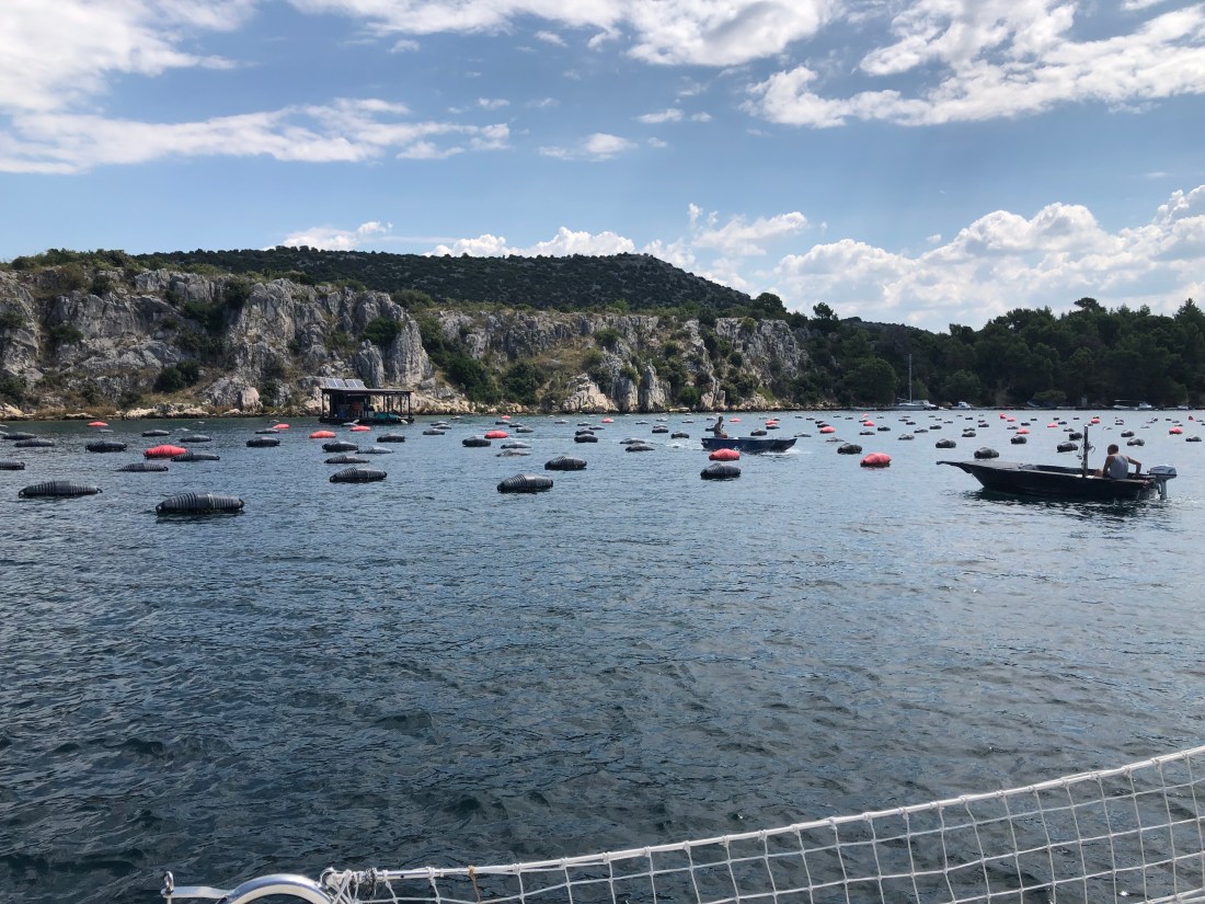 Abfahrt flußaufwärts zur Muschelzucht vorbei an Sibenik!