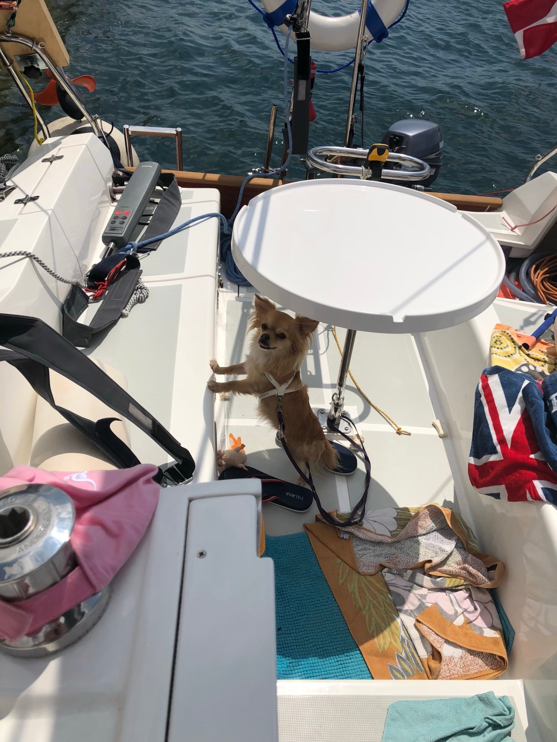 Für Ginger ist der Cockpittisch der ideale Sonnenschirm!