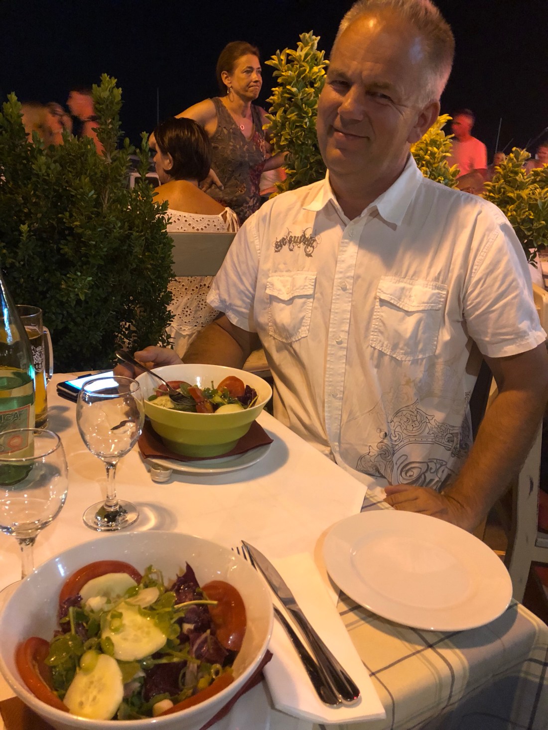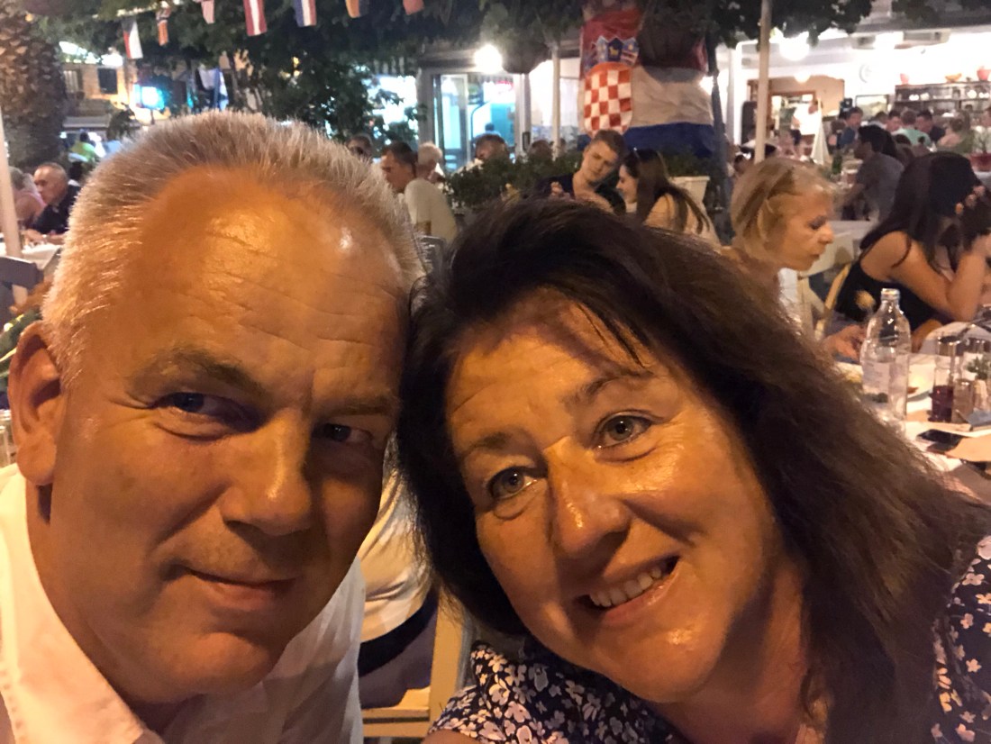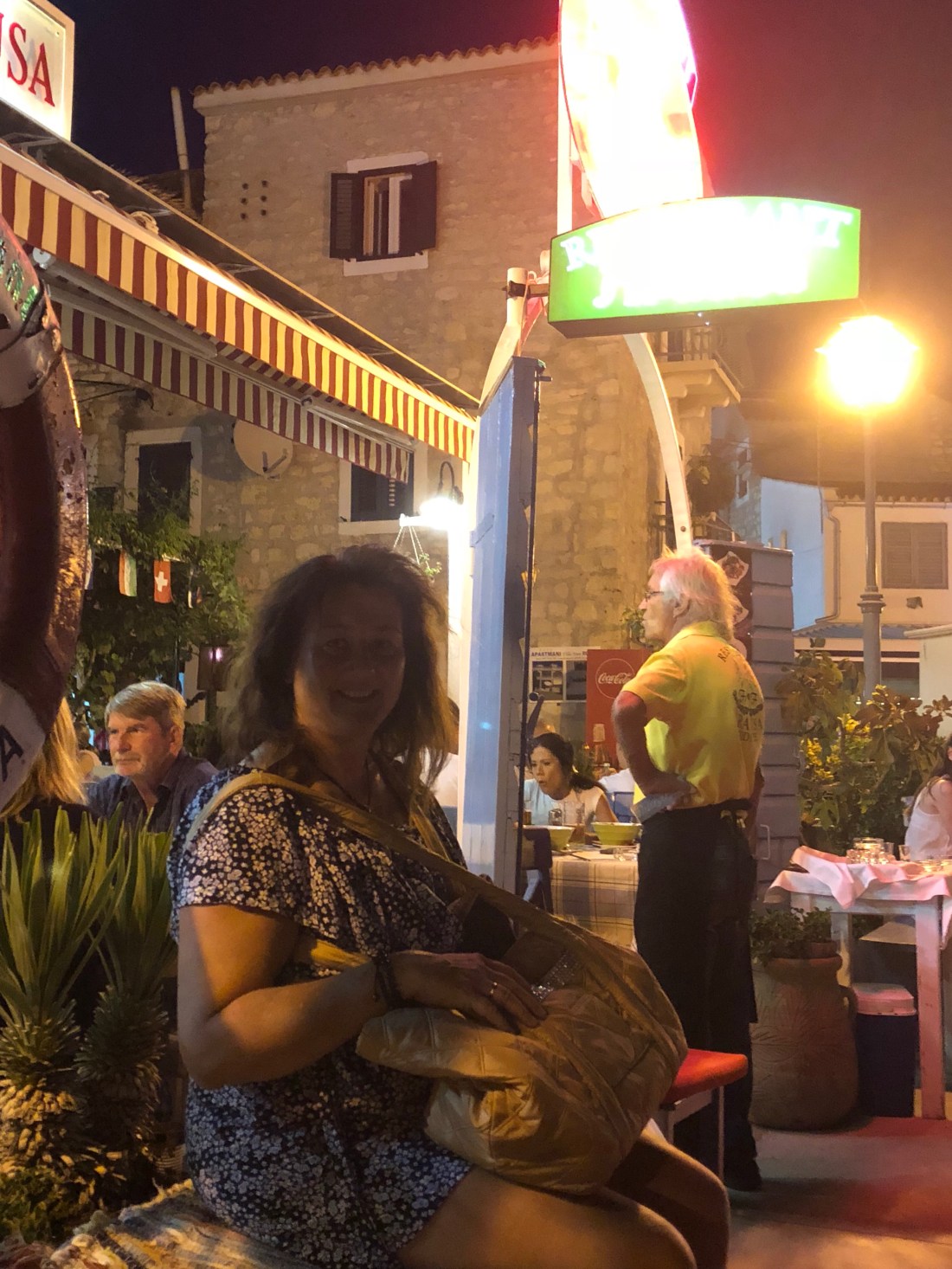 Abends in Vodice gehen wir wieder wie vor 10 Jahren ins Restaurant Aurausa! Der Chef ist noch immer da und weist die Gäste zum Platz. Wir müssen etwas warten bis frei wird.