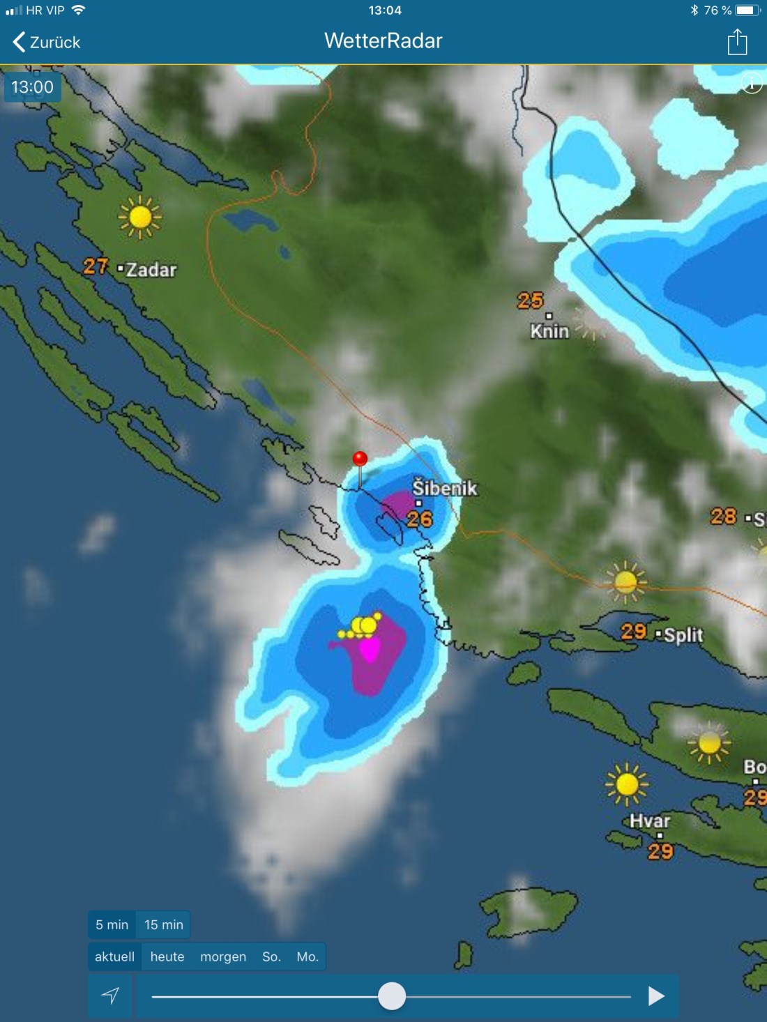 Da das Wetter immer noch unbeständig ist für eine Weiterfahrt nach Zut (6 Stunden), beschließen wir in Vodice zu bleiben.