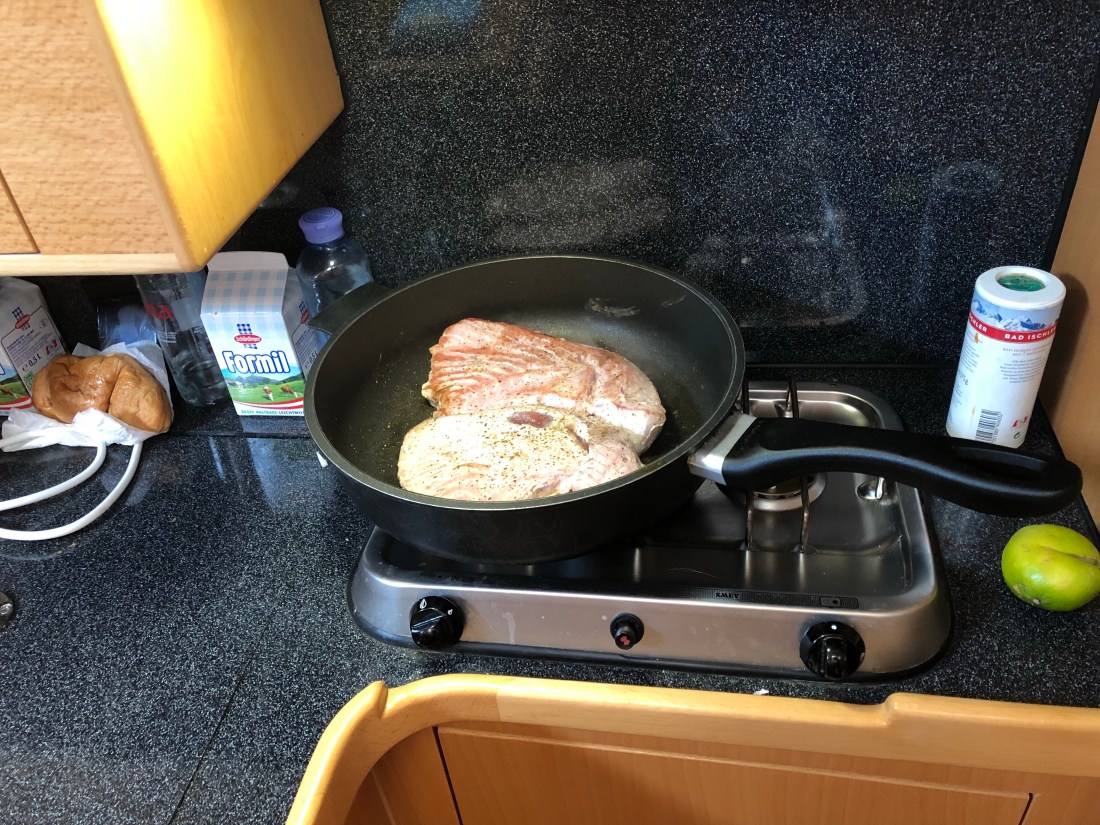 Ich koche am Nachmittag die Riesenthunfischsteaks.