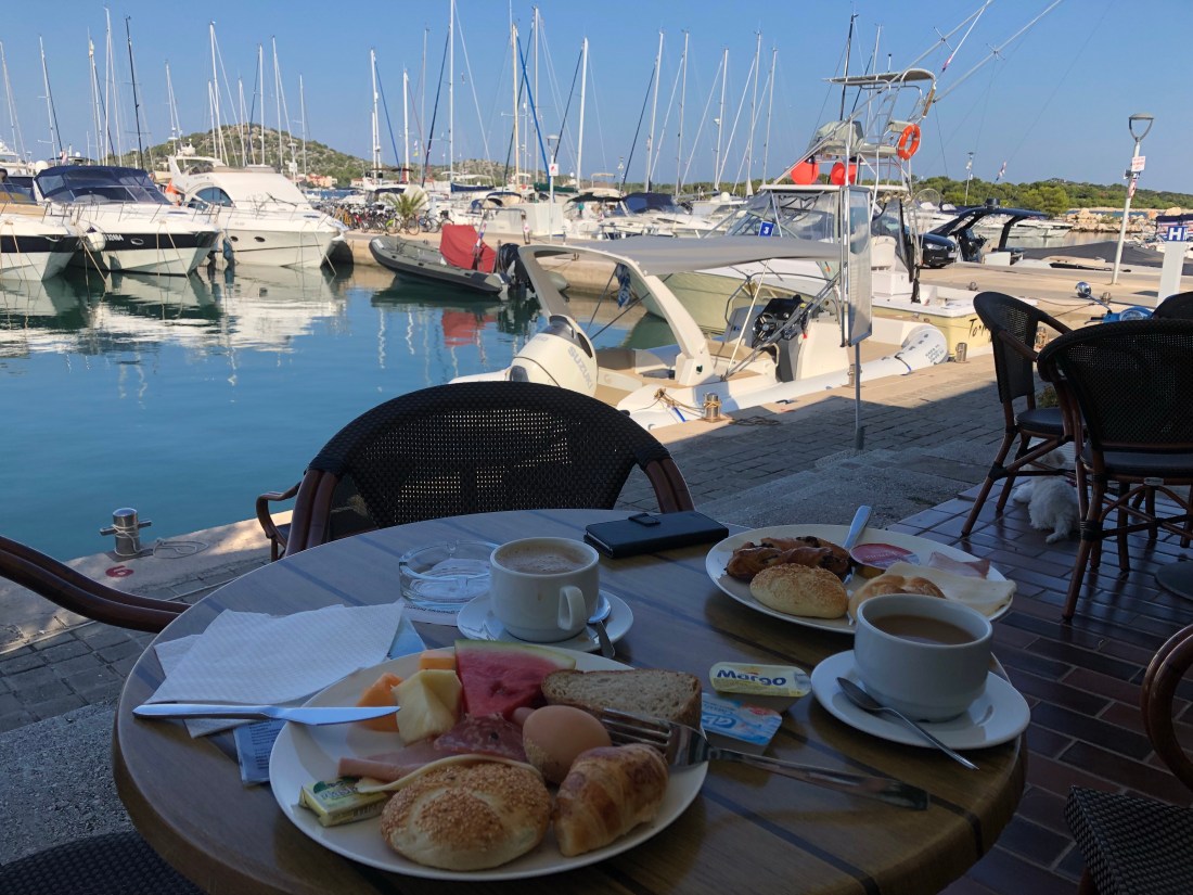 Heute ist es schon am Morgen sehr heiß, daher gehen wir ins Marina Restaurant frühstücken, um dort ein Weilchen im Vollschatten zu sitzen.