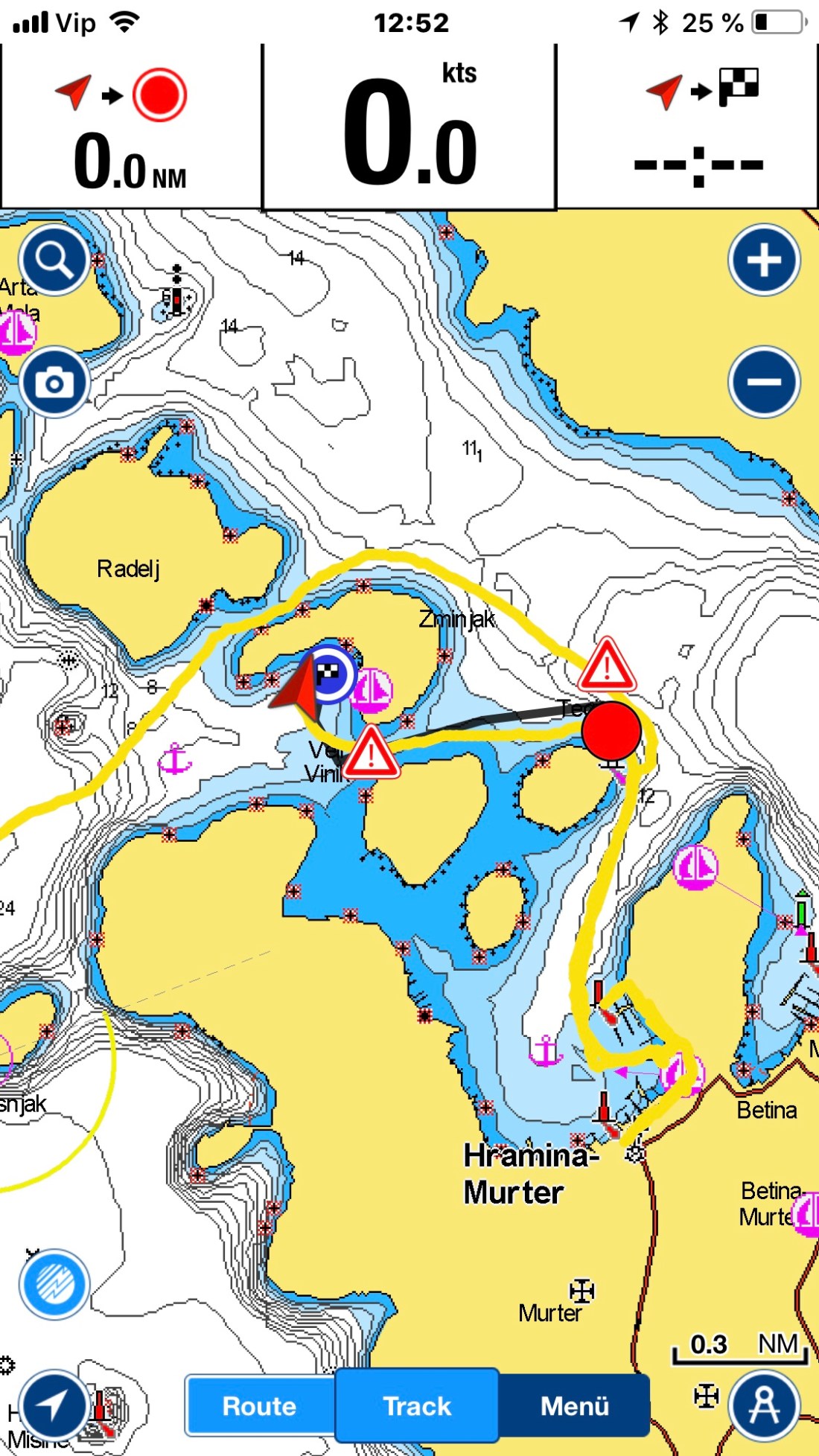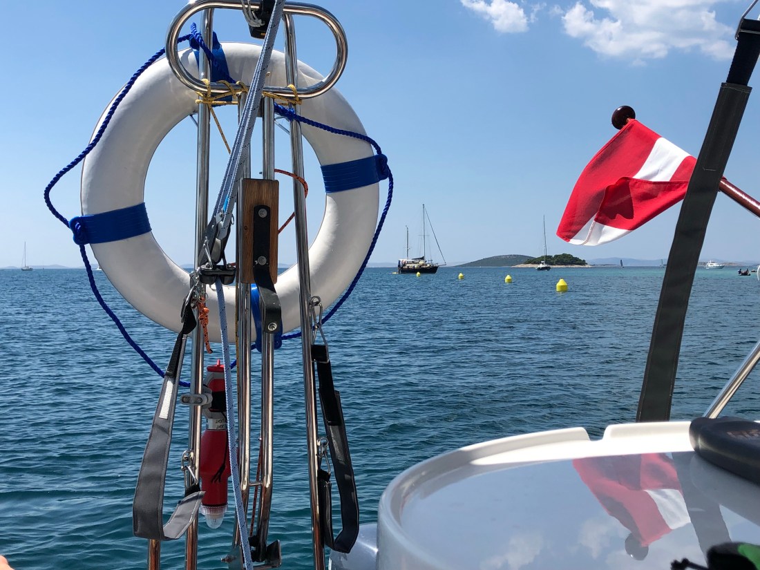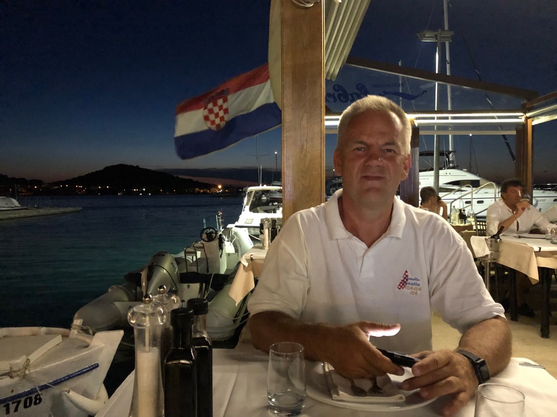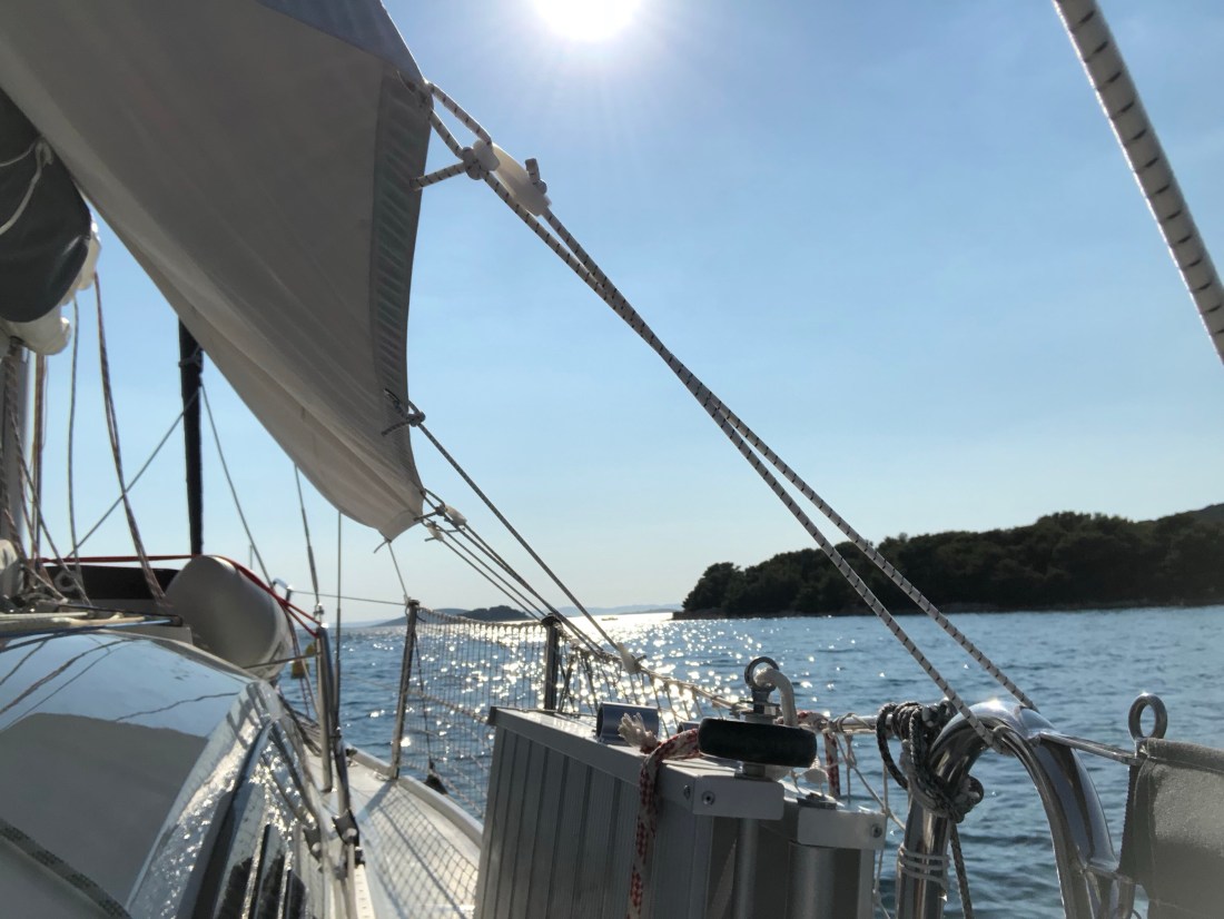 Am Nachmittag dreht der Wind auf West und bläst uns wieder mit 18 kn in die Bucht. Schließlich fahren wir in die Marina zurück, um noch einen letzten schönen Abend im Ort Murter zu verbringen.